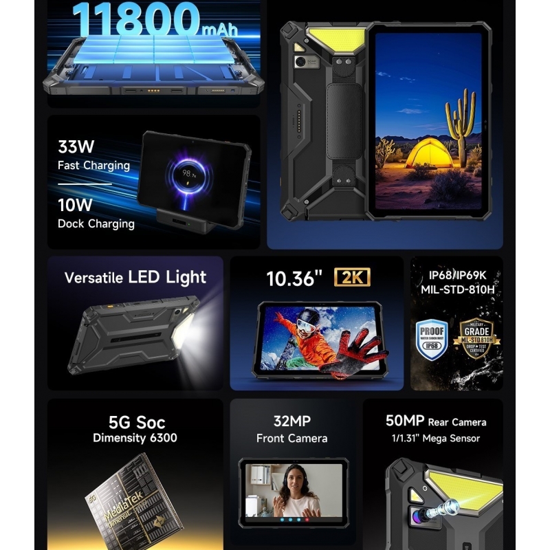 Entwickelt für anspruchsvolle Umgebungen.Dieses robuste Tablet ist ideal für Fachleute, die im Freien, auf Baustellen, in der Logistik oder unter extremen Bedingungen arbeiten, und vereint Robustheit mit fortschrittlicher Technologie. Es ist nach IP68/IP69K und MIL-STD-810H zertifiziert, widerstandsfähig gegen Wasser, Staub, Stöße und Vibrationen und garantiert selbst unter schwierigsten Bedingungen optimale Zuverlässigkeit.